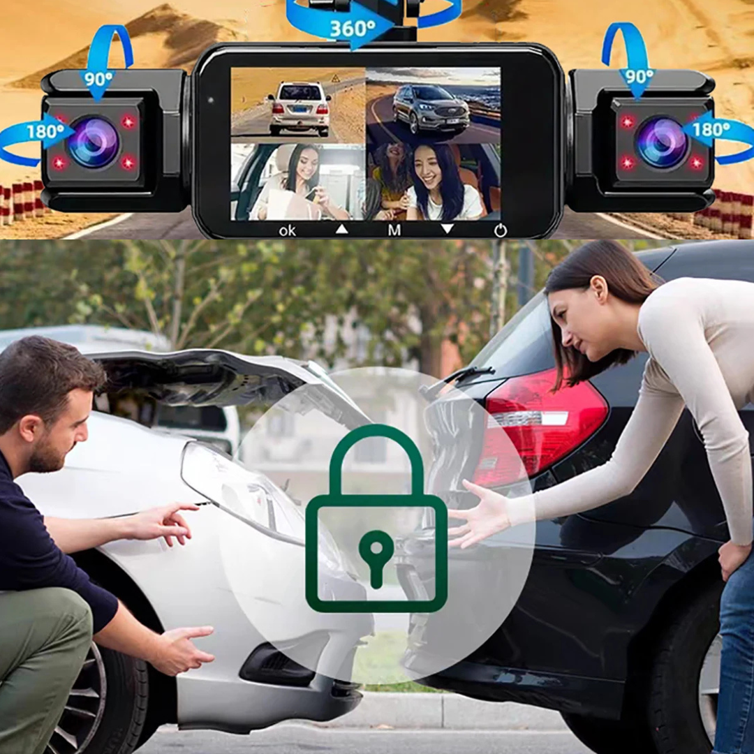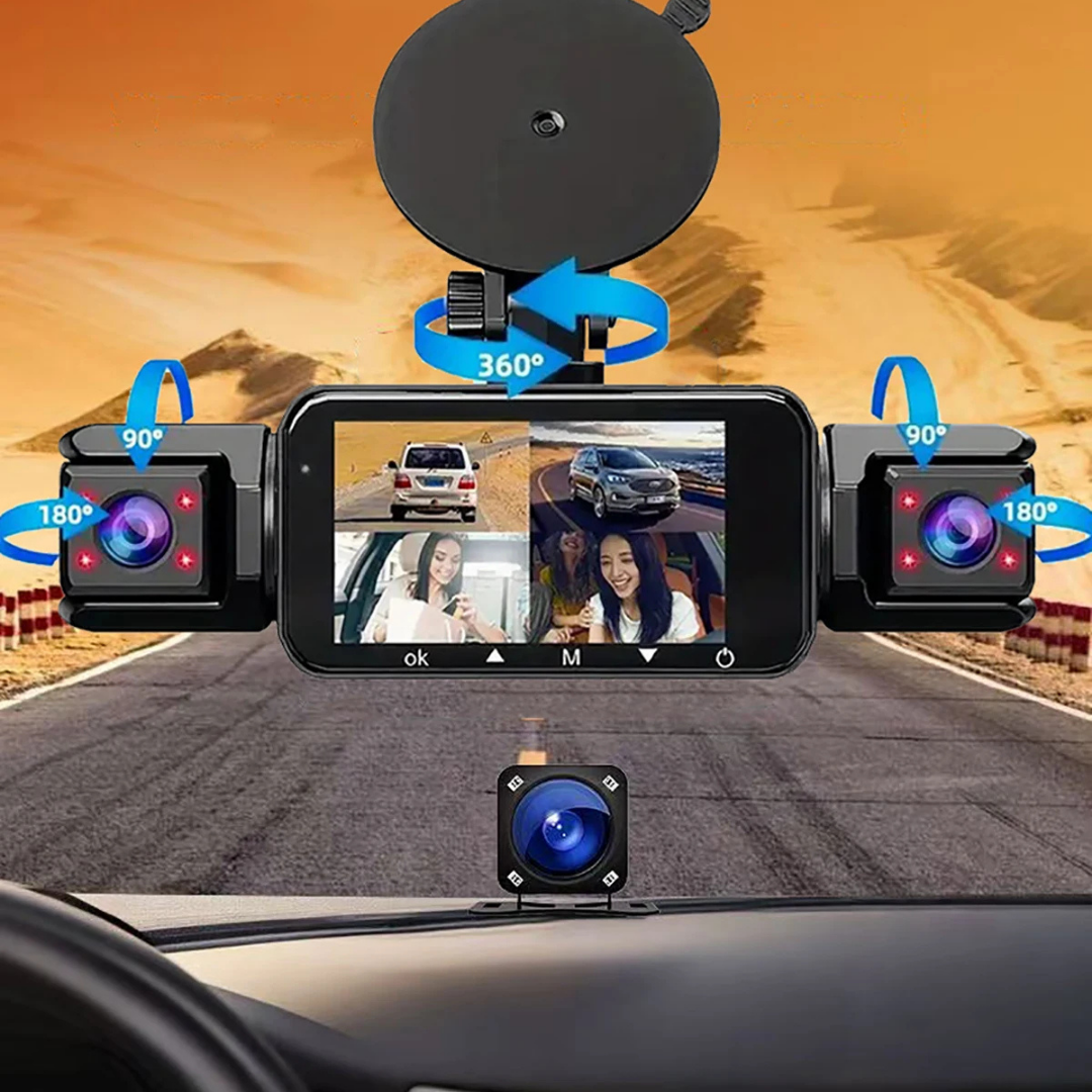 Dashcam 360° 4 Canaux WiFi – Vue Totale Avant/Arrière/Intérieur, Stationnement 24h/24